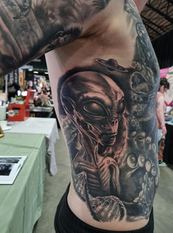 In the last 3 years, her black and grey realism style has improved to outstanding levels and her portfolio of work speaks for itself. Unassuming and professional, Marie is making a big name for herself in the North-East with fine work and high standards. Now she's practising colour tattoos, so she'll be smashing that genre soon too!
